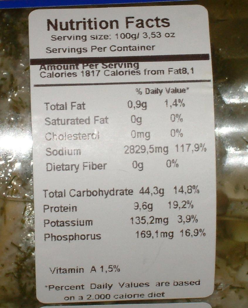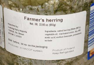 The food label on it, though, is nothing short of ridiculous. It suggests that 100g of this product contains 0.9 grams of fat and 44.3 grams of carbohydrates. And that's for herring in oil!