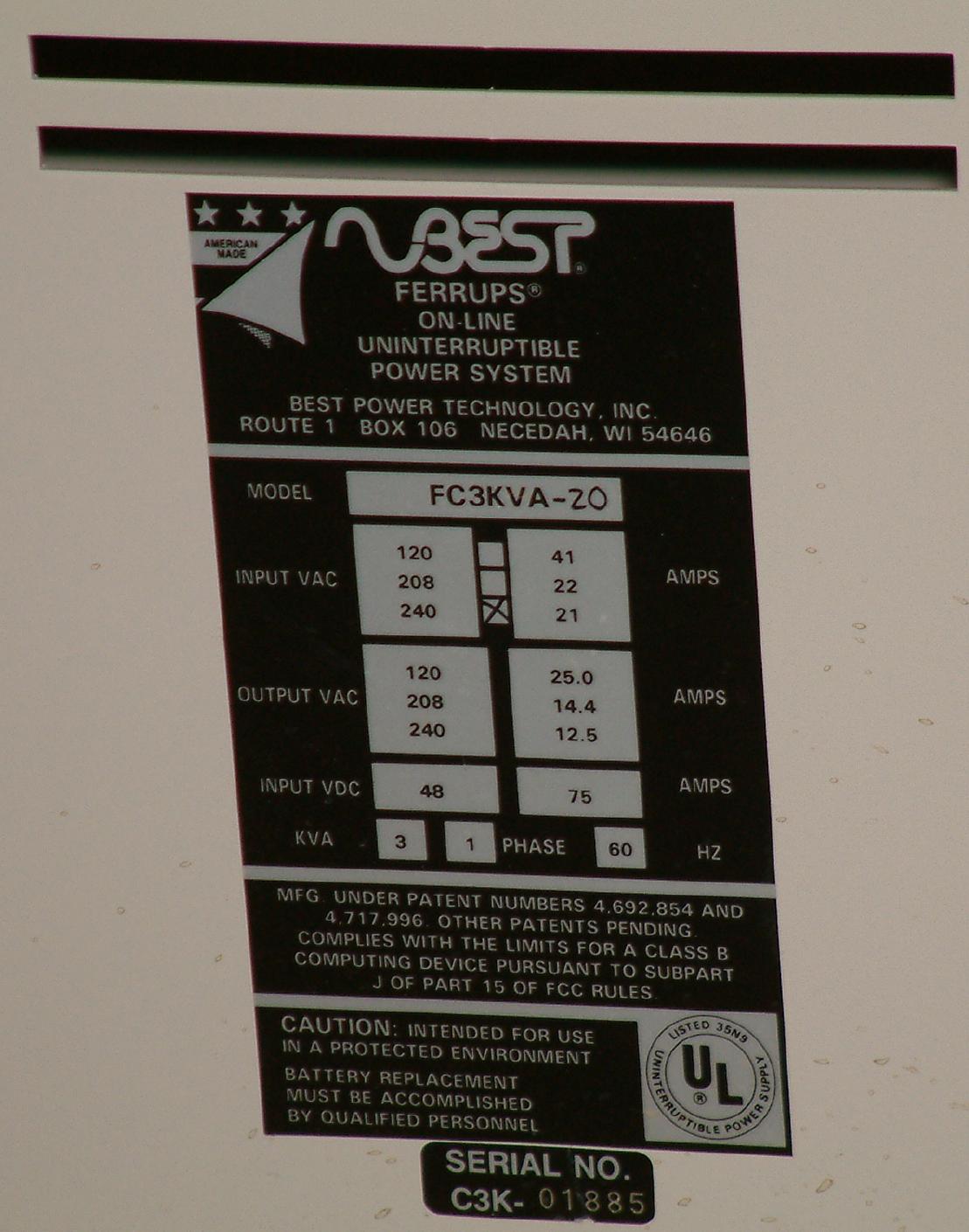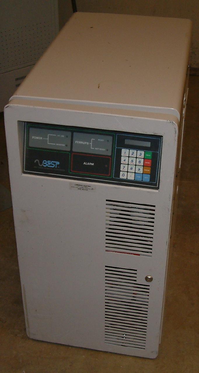 This Ferrups UPS is a steel cabinet about 3x3x1.5 feet. It has the front panel